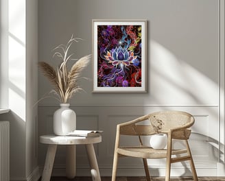 Enhance your space with this abstract digital art featuring a captivating lotus flower at its center.