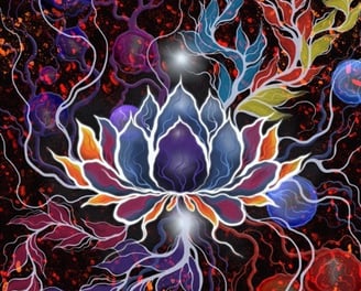 Radiant Lotus Harmony: Abstract Expressionist Digital Artwork