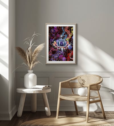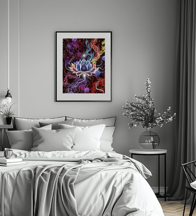 This artwork allows for flexible printing and framing options to suit your unique space. Whether you’re looking to update your wall art or searching for a unique abstract gift, this lotus flower digital painting will captivate and inspire.
