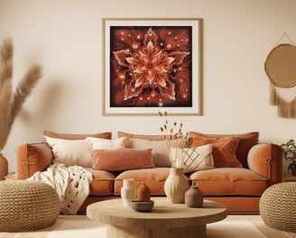 The surrealist art style of this piece blurs the boundaries between reality and imagination, making it a unique addition to any art collection. The design’s celestial undertones, combined with the glowing flower, evoke themes of wonder, transformation, and cosmic beauty.