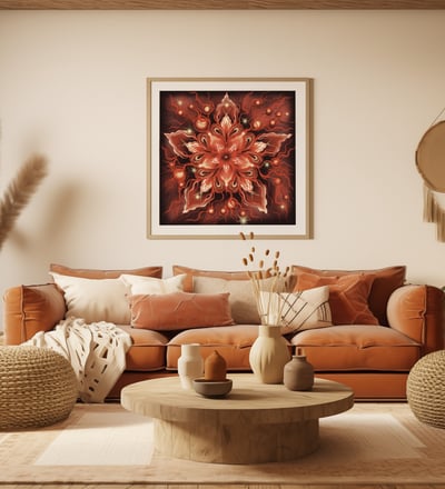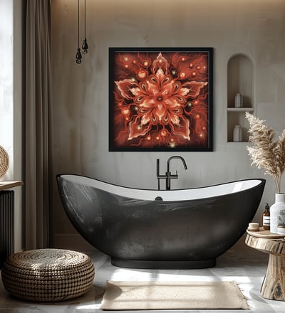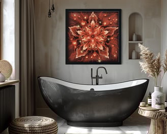 Bring a touch of the surreal into your space with this captivating digital artwork, featuring a stunning red flower with radiant white petals at its center.