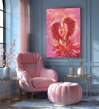 Available as a high-resolution digital painting, this artwork allows for customizable printing options, making it easy to adapt to any space. Celebrate the beauty of love, transformation, and nature with this stunning celestial-inspired floral artwork, a must-have for those who appreciate fantasy, romance, and spiritual symbolism.