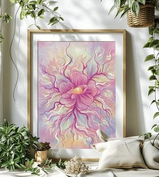 Alina's artistic vision combines the balance between the real and imagined worlds, reflecting her passion for sacred geometry, energy paintings, and mindfulness flowers. Her works are not only visually stunning but also serve to harmonize different spaces and uplift individuals towards a more positive trend in life.