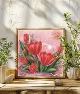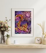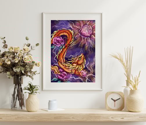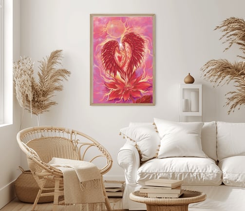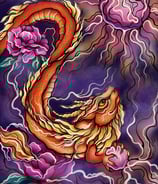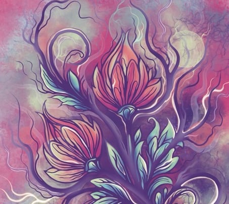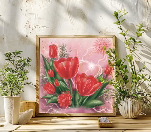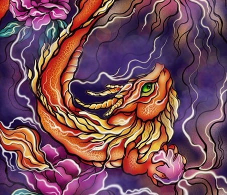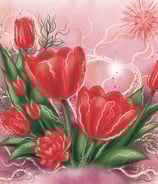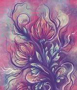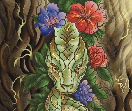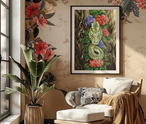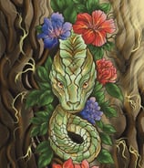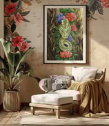 Snake & Vibrant Red and Blue Flowers (Transformation and Renewal)