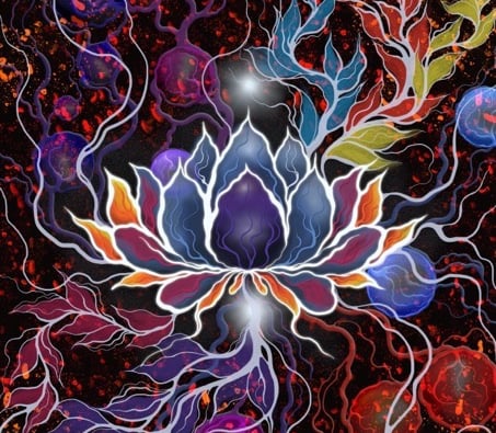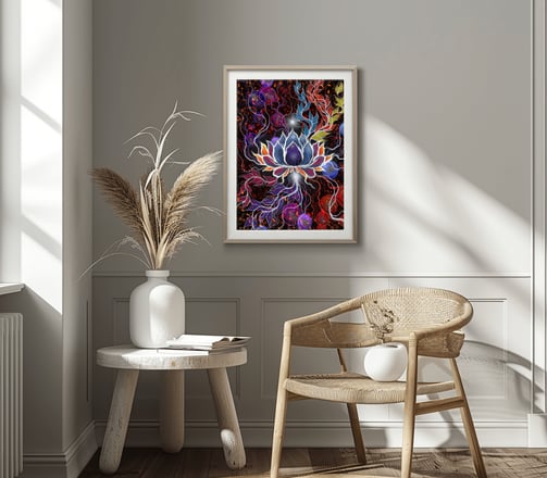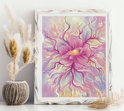 Radiant Lotus Harmony: Abstract Expressionist Digital Artwork